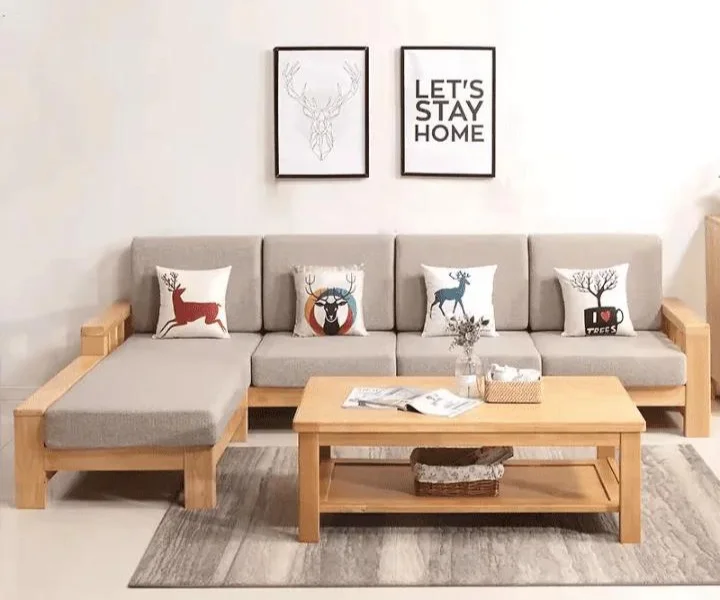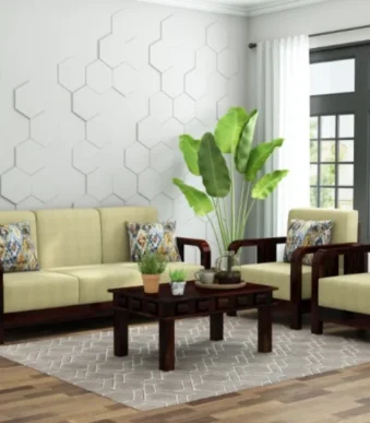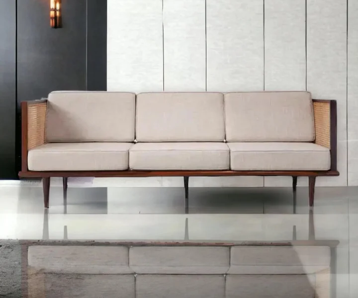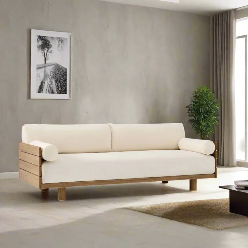 Adouer Wood Acacia Frame 3 Seater Sofa in Natural Finish – Minimalist Charm with Modern Comfort