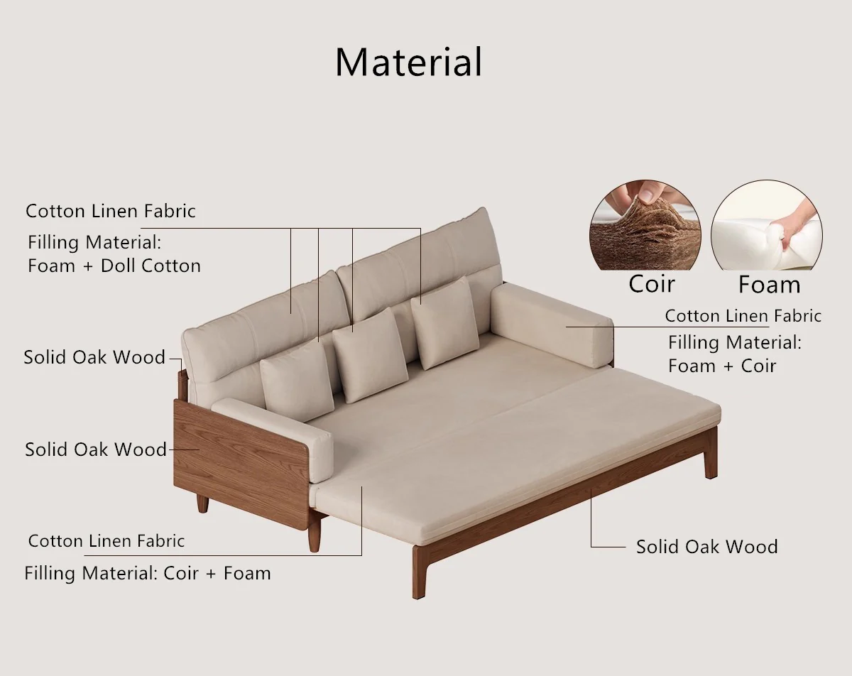 DM Solid Wood Frame Pull-Out Sofa Bed