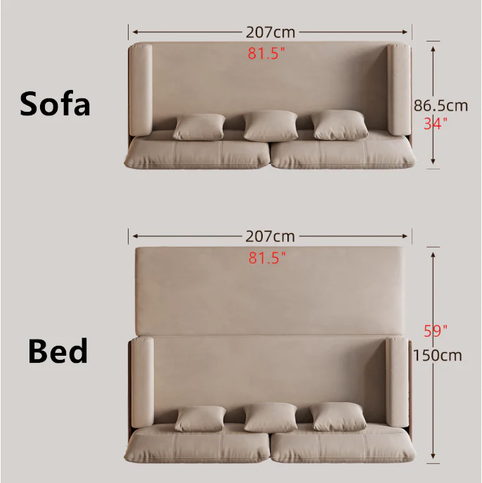 • Effortless Transition: Equipped with an ultra-smooth telescopic pull-out mechanism, allowing you to convert the sofa into a spacious bed in less than 10 seconds.