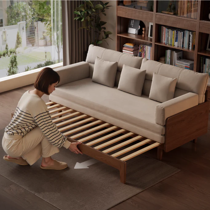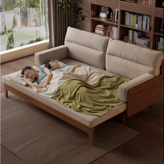 Japandi Solid Wood Sofa Bed