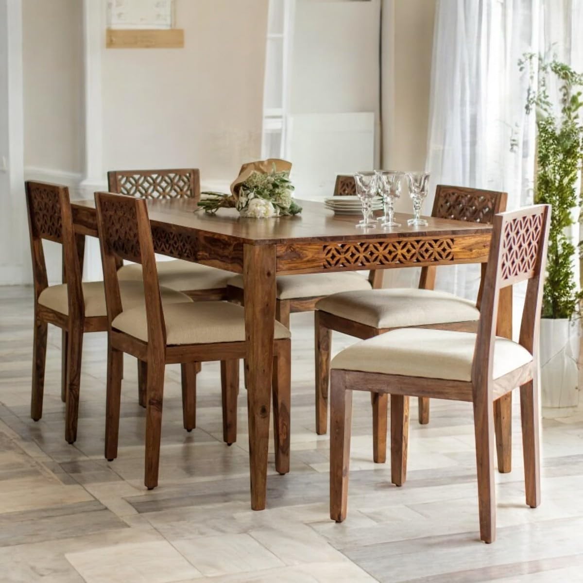 Premium Solid Sheesham Wood 6-Seater Dining Table Set
