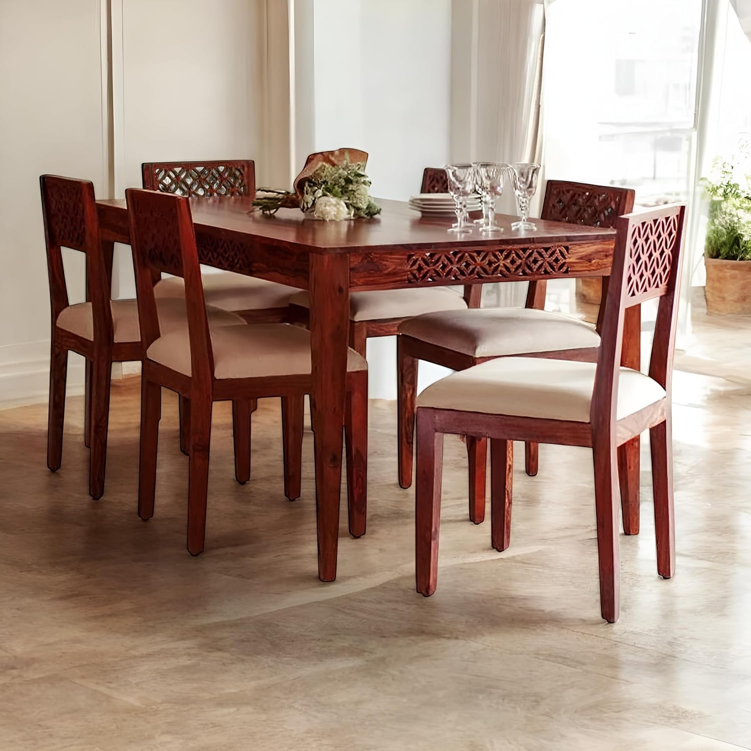 Premium Solid Sheesham Wood 6-Seater Dining Table Set
