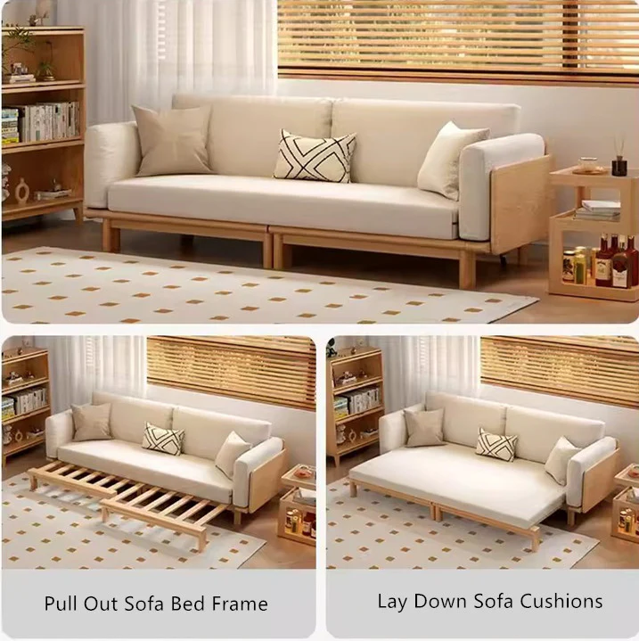Headline: Scandi-Chic Meets Versatility: The Modern Minimalist Solid Wood Sofa Bed