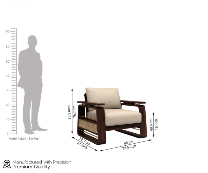 About Material & Finish:- Made of high-quality sheesham wood, this wooden sofa with cane and brass work is sturdy in nature and offers lasting durability. The Vedic 1 seater wooden sofa with cane and brass work is available in varied finish options for you to choose from.